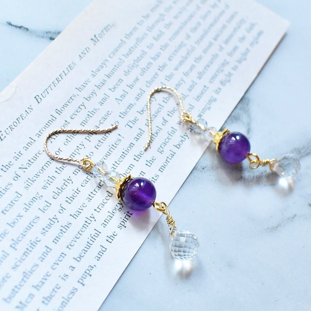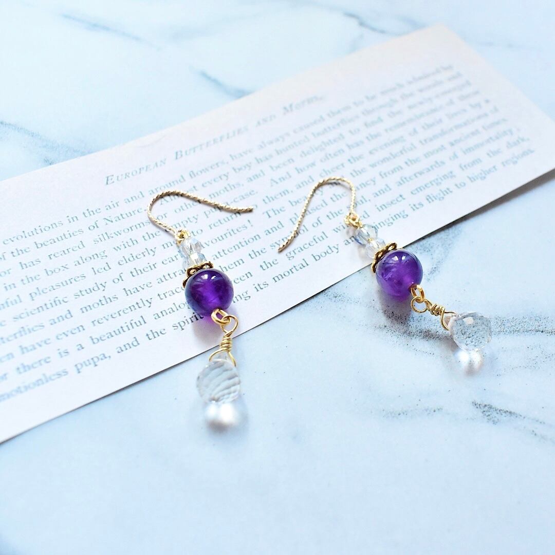魔法の色合い: アメジスト 水晶 14kgf ピアス No.13