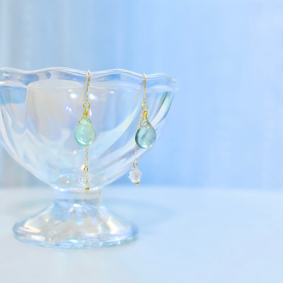 幻想的な光景: 水晶 フローライト ピアス 14kgf 耳飾り チェーン ロングピアス